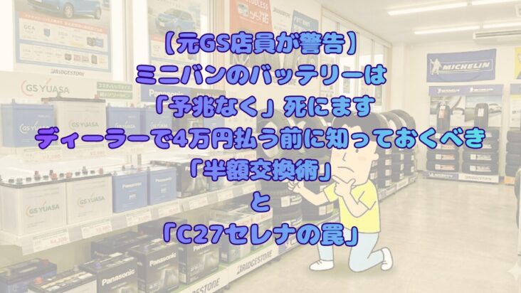 ガソリン・メンテナンス 【元GS店員が警告】ミニバンのバッテリーは「予兆なく」死にます。ディーラーで4万円払う前に知っておくべき「半額交換術」と「C27セレナの罠」