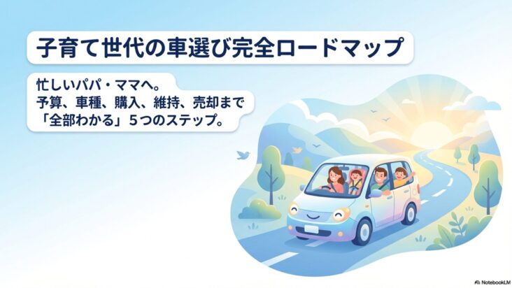 【結論】子育て中の車選びは「予算(家計から逆算)→ 車種(ライフスタイルで絞る)→ 買い方(残クレは要注意)→ 維持(保険と整備を賢く)→ 売却(タイミングが命)」の5ステップで考えれば失敗しません。この記事は、その全体像を1本にまとめたロ...