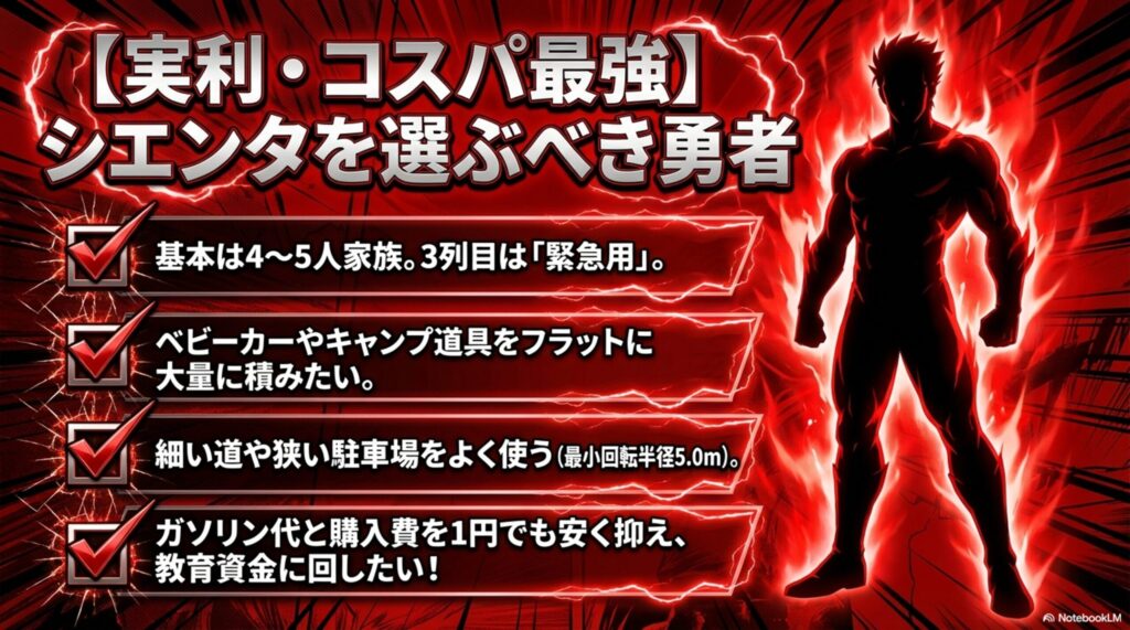 ▼【シエンタ】を買うべき人(実利・コスパ最強)