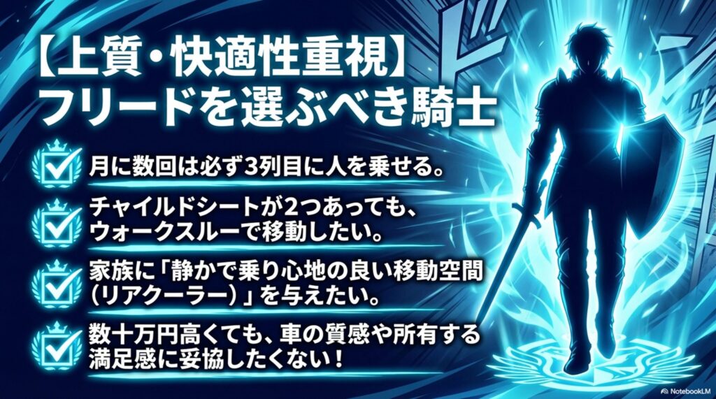 ▼【フリード】を買うべき人(上質・快適性重視)