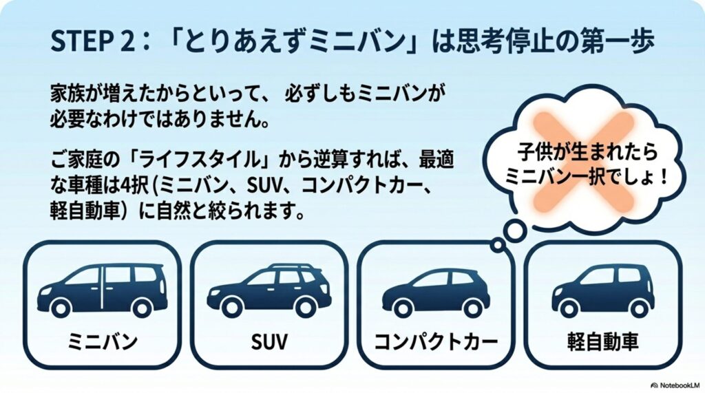 STEP 2:車種を選ぶ ―― 「家族のライフスタイル」で決まる