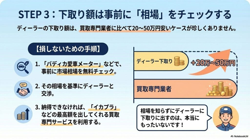 原則3:ディーラー下取りの前に相場を知る