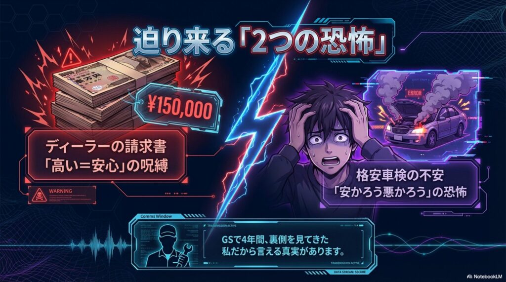 たった5分この記事を読むだけで、次回の車検から「無駄な数万円」を家計に取り戻し、ディーラーの言いなりになるストレスから永遠に解放されます!
