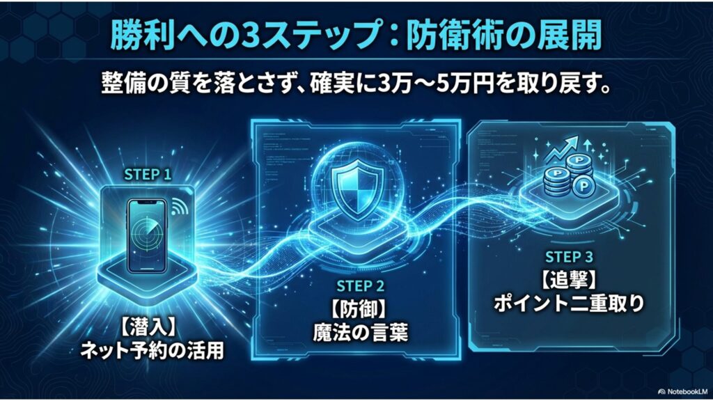 3. カモられずに「GS車検」で最安値を叩き出す3つの防衛ステップ