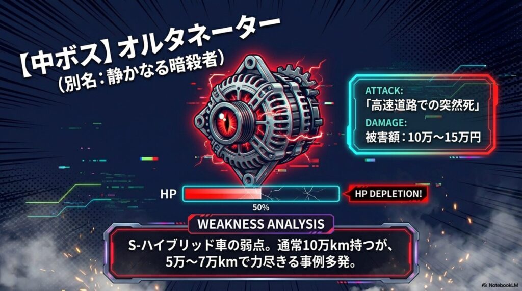 その1:突然エンジンが止まる「オルタネーター(エコモーター)」の恐怖