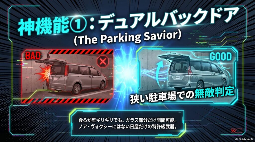 ① 日本の狭い駐車場の救世主「デュアルバックドア」