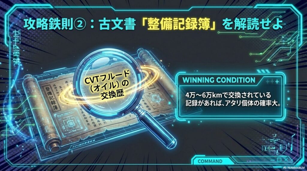 鉄則②:整備記録簿(CVTフルード交換歴)を確認すること