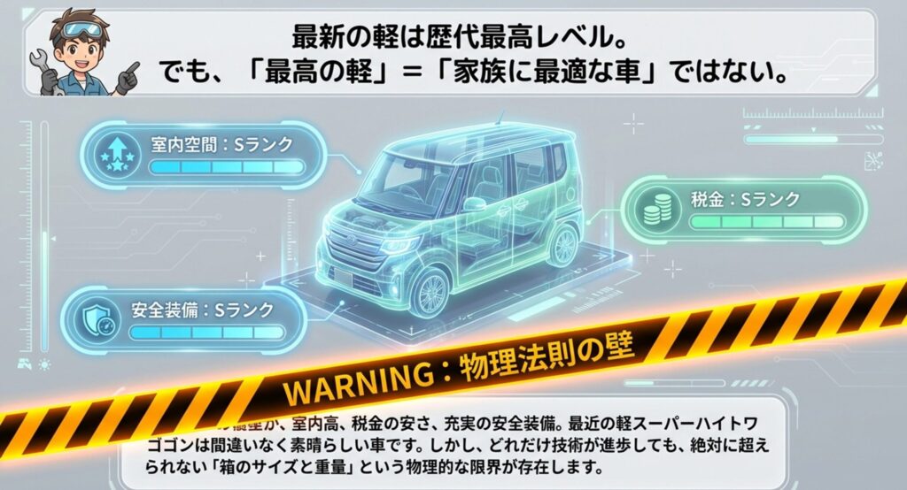 - 軽自動車は2026年時点で歴代最高の完成度。 でも物理的な限界は技術では超えられない